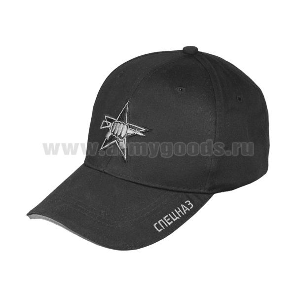 Бейсболка черная вышитая Спецназ (выпуклая эмблема: кулак с автоматом на звезде)