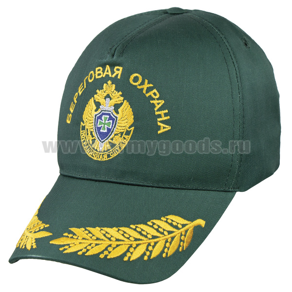 Бейсболка зеленая вышитая Береговая охрана Пограничная служба (с орлом ПС)