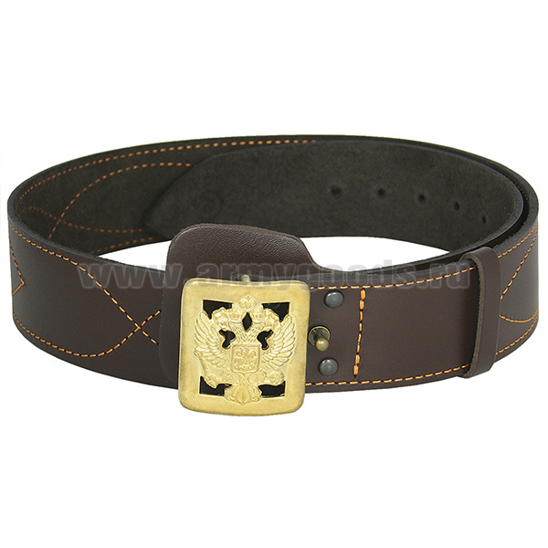 Ремень генеральский кожаный со штампованной пряжкой Орел РФ (коричневый)