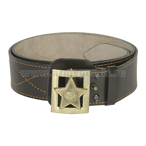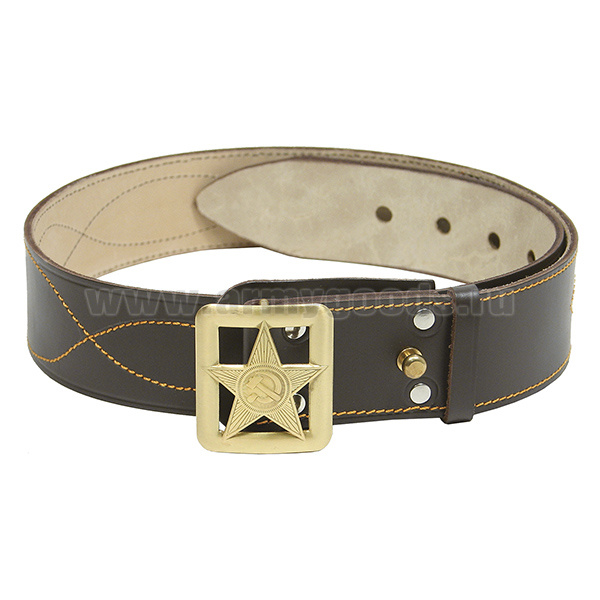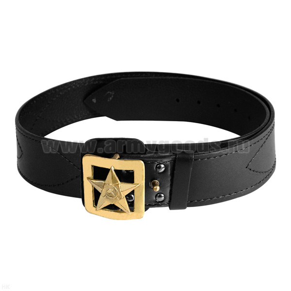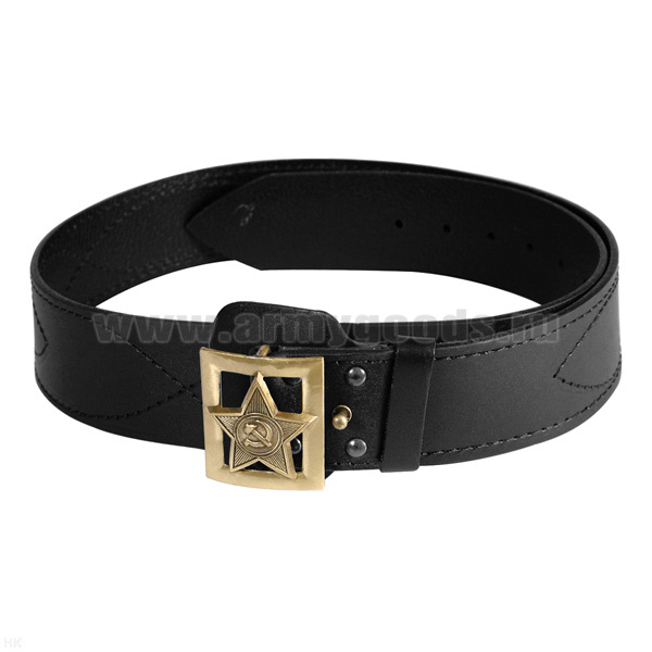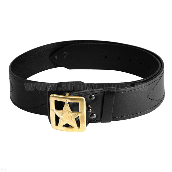 Ремень генеральский кожаный с литой пряжкой Звезда с серпом и молотом (без лучей)