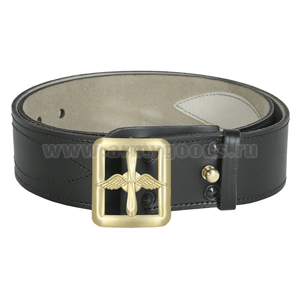 Ремень генеральский кожаный черный со штампованной пряжкой ВВС