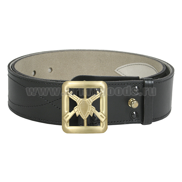 Ремень генеральский кожаный черный со штампованной пряжкой ПВ