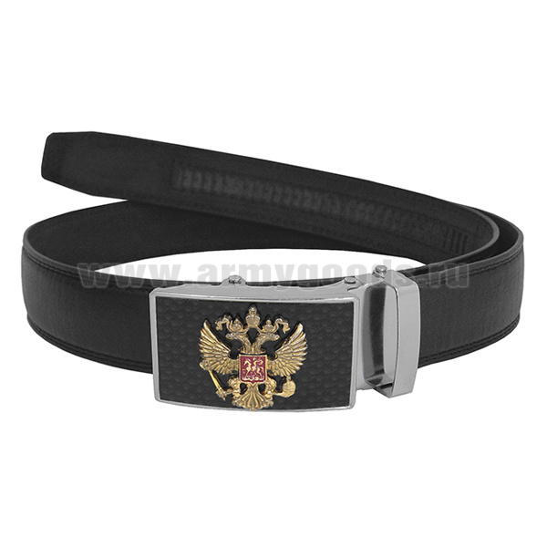 Ремень брючный кожаный черный с цветной бляхой Орел РФ