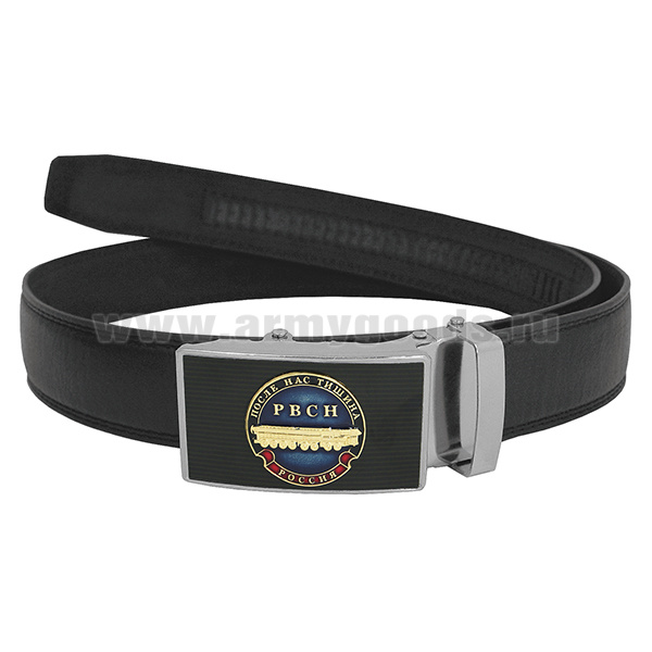 Ремень брючный кожаный черный с цветной бляхой РВСН (После нас тишина)