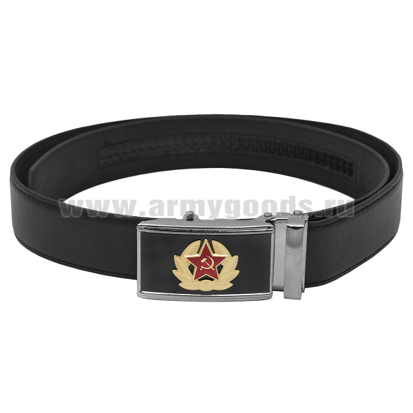 Ремень брючный кожаный черный с цветной бляхой Кокарда СА р/с