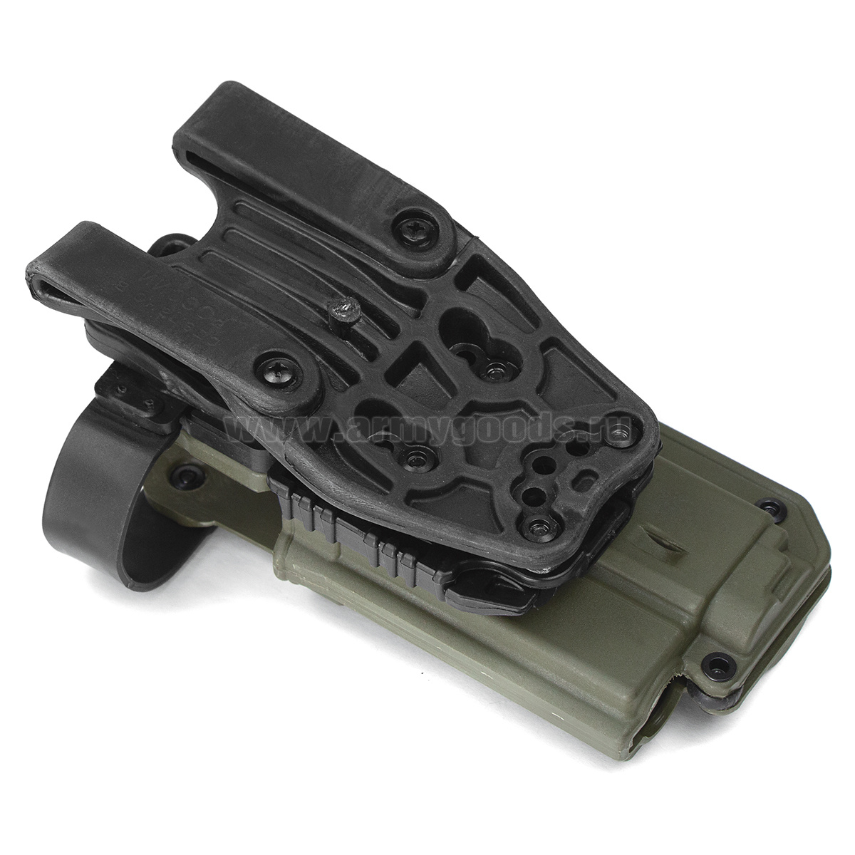 Кобура тактическая под пистолет Глок с отделением под фонарик (ударопрочный полиамид) оливковая
