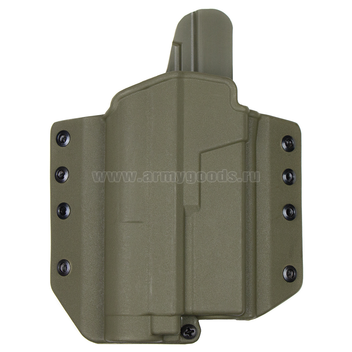 -Кобура поясная под пистолет Глок с отделением под фонарик (ударопрочный полиамид) оливковая