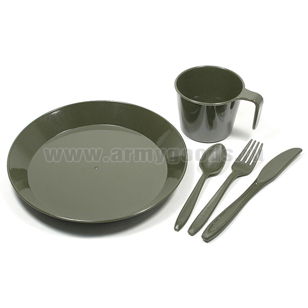 Набор посуды походный (тарелка, чашка ,вилка, ложка, нож) пластик оливк.
