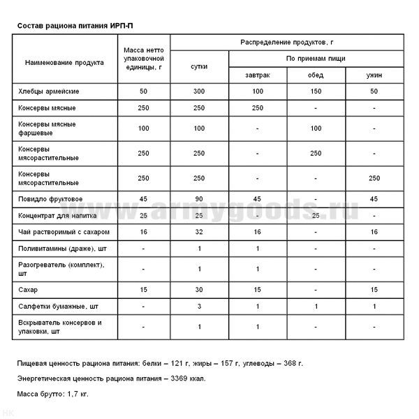 Сухпаек Повседневный (индивидуальный рацион питания - повседневный) ИРП-П (срок годности до 08.05.2018)