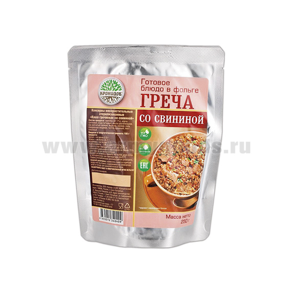 Консервы мясорастительные Греча со свининой (250 г) (готовое блюдо в фольге)