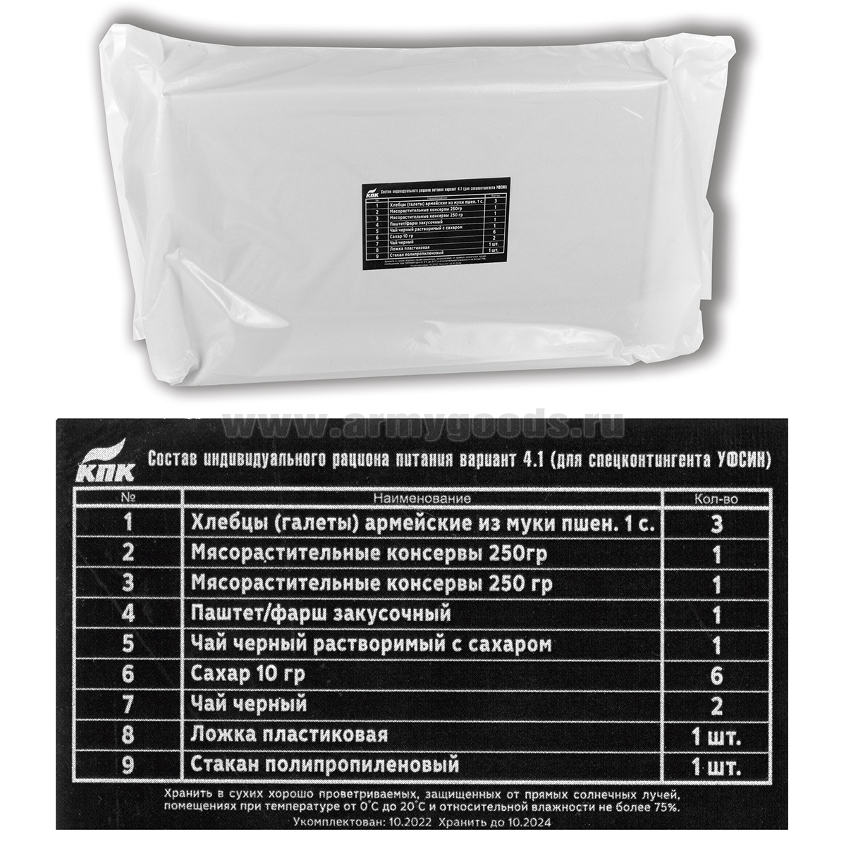 Сухпаек "КПК" (№4.1 УФСИН спецконтингент) срок годности до 09.2026