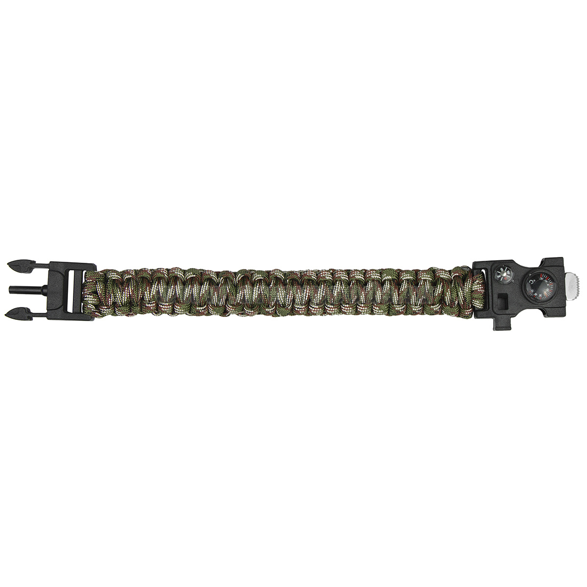 Браслет выживания с пластиковым замком, компасом, термометром и мет. пилкой (кмф зел)