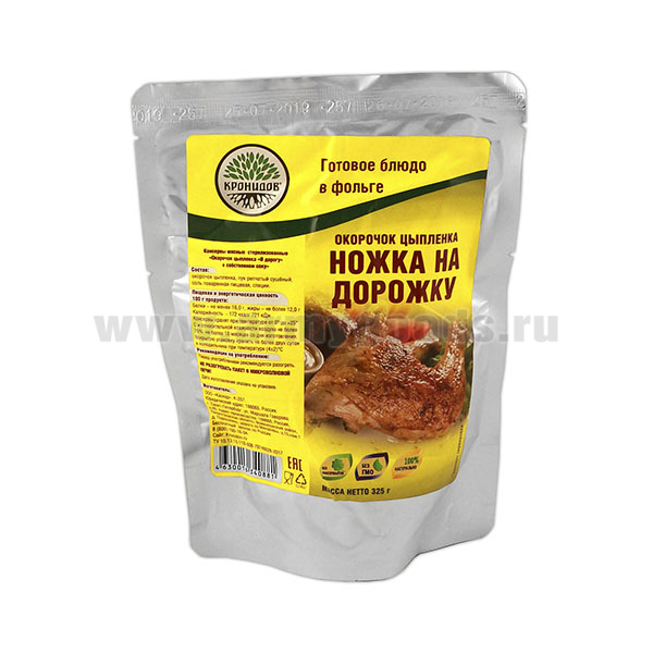 Консервы обеденные Окорочок цыпленка "Ножка на дорожку" в собственном соку (325 г) (готовое блюдо в фольге) до 05.2026 и ранее