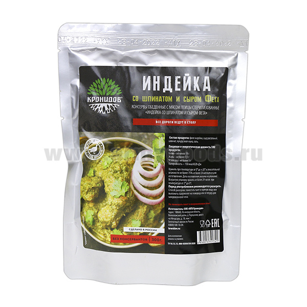 Консервы обеденные Индейка со шпинатом и сыром Фета (300 г) (готовое блюдо в фольге) до 05.2026 и ранее