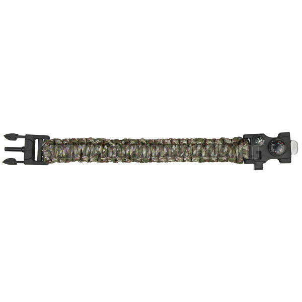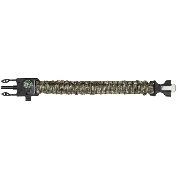 Браслет выживания с пластиковым замком, компасом, термометром и мет. пилкой (кмф зел)