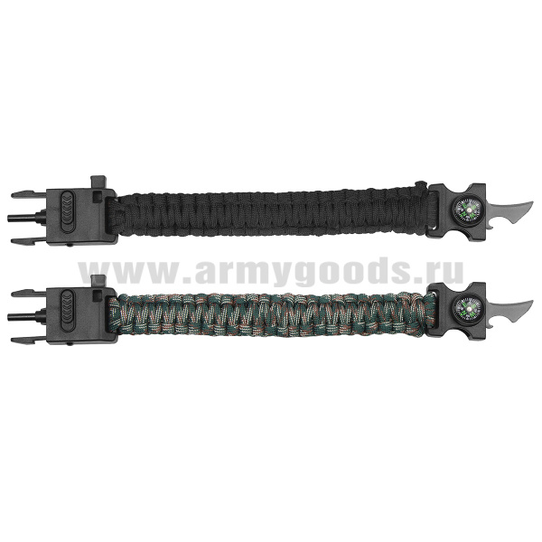 Браслет выживания с пластиковым замком, компасом, ножиком и фонариком (кмф зел/черный)