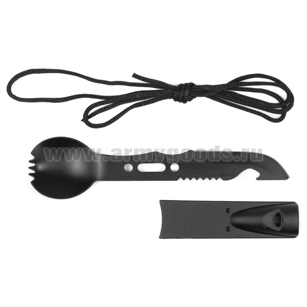 Ловилка-мультитул 7-в-1 (ложка-вилка, нож-гарпун, нож для чистки рыбы, гвоздодер, ключ-шестигранник, аварийный свисток, открывашка) из стали (Китай)