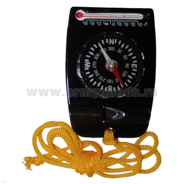 Компас пласт. с термометром и свистком на шнурке