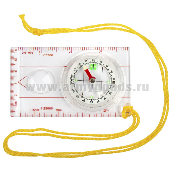 Компас жидк. с линейкой (12 см) и малой лупой, на шнурке
