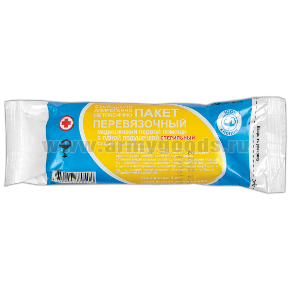 Пакет перевязочный медицинский стерильный с одной подушечкой