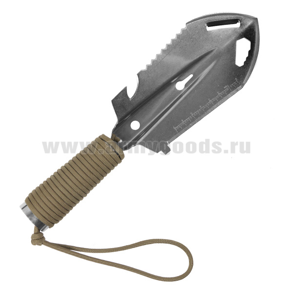 Лопатка универсальная (общая длина 26 см) стальн (пила, гвоздодер, шестигранные ключи, угловая отвертка, открывашка, нож для снятия кожуры, паракордовая веревка)