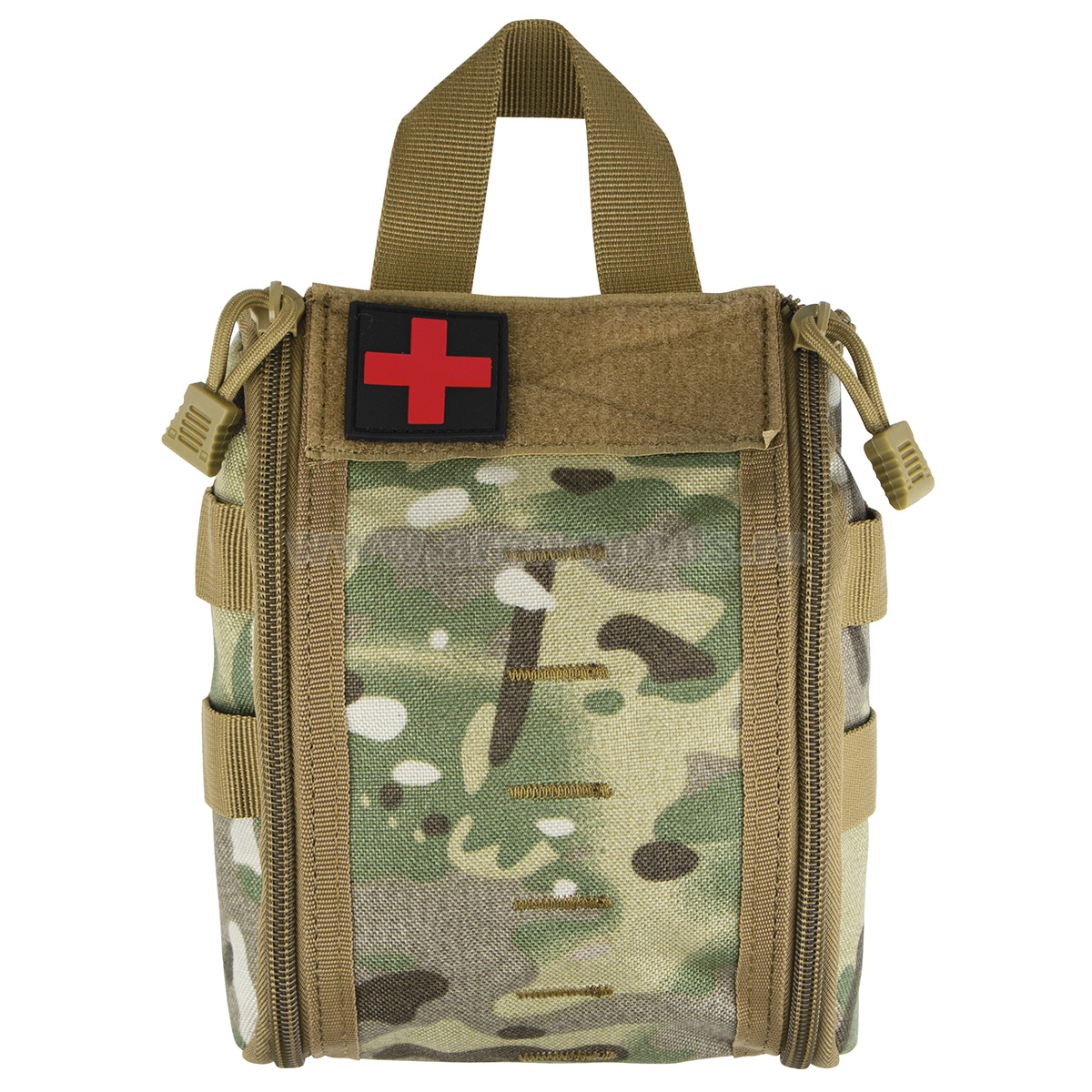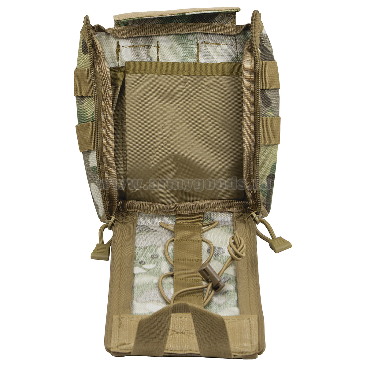 Чехол для аптечки тактический с 2 молниями и красным крестом (MOLLE-система) "мультикам"