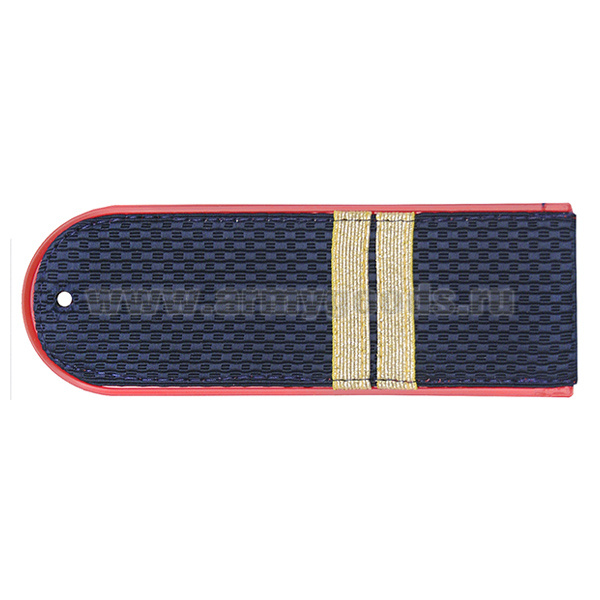 Погоны темно-синие (красн. кант) Полиция (ОВД) с нашит. металлизированным текстильным галуном (мл. сержант) на пластике