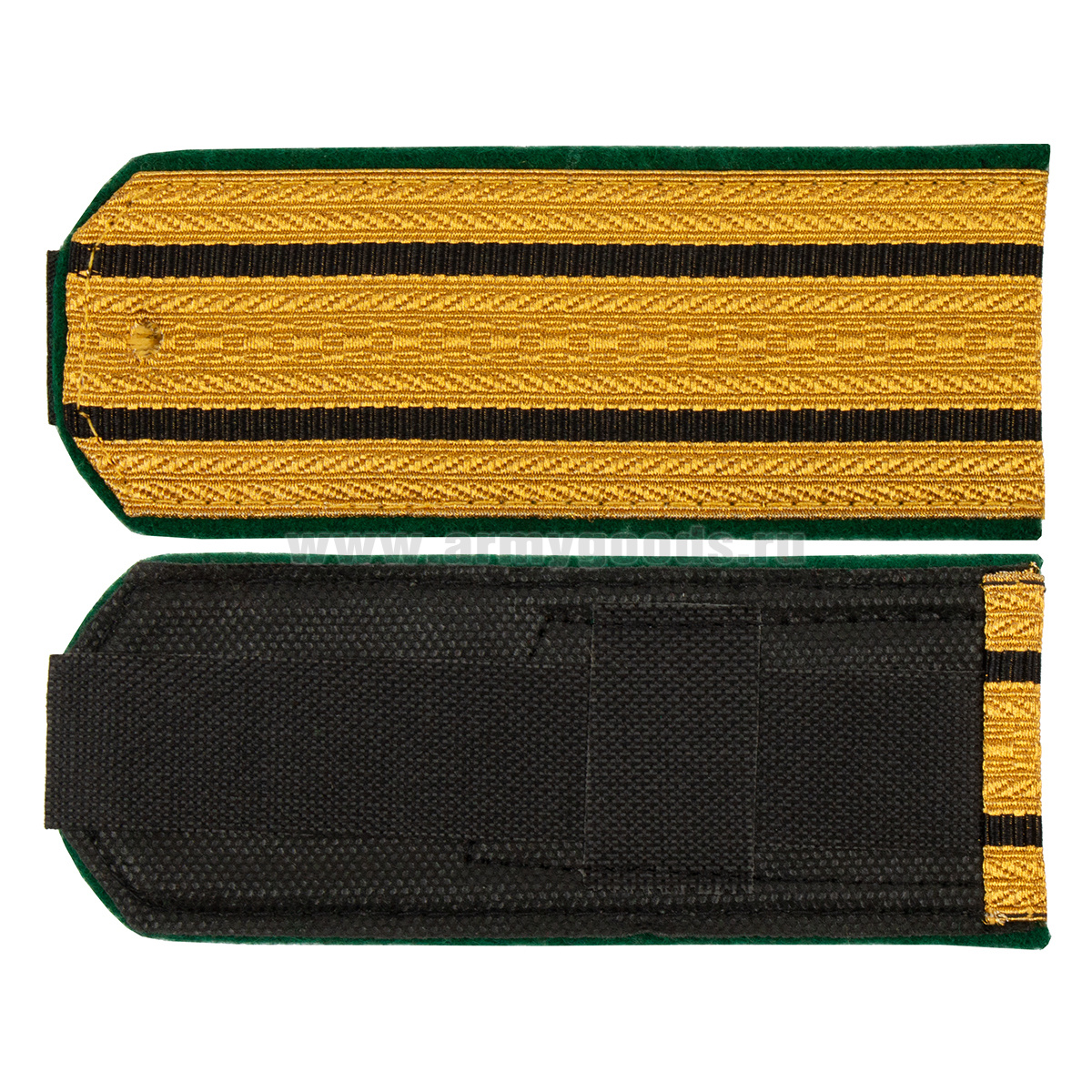 -Погоны парад. зол. мет. зел. кант 2 черн. пр. (с хлястиком)