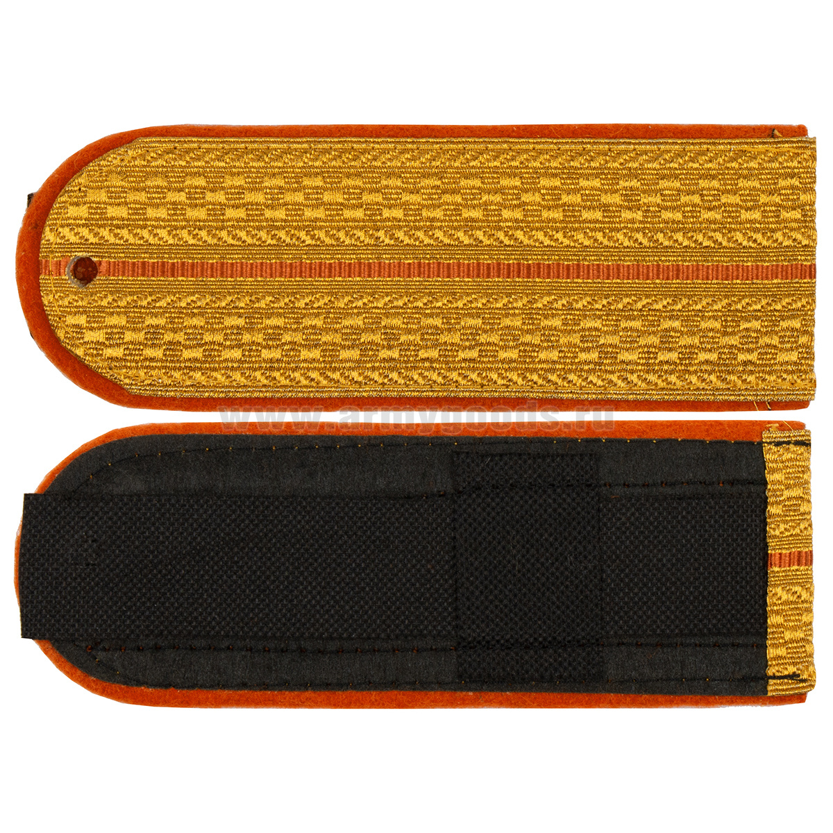 Погоны парад. зол. мет. МЧС 1 оранжевый пр. (с хлястиком)