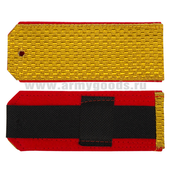 Погоны парад. зол. мет. Следственный комитет 2 красн. пр. (с хлястиком) 4,5х13,5см