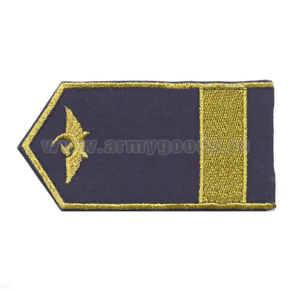 • Погоны синие с нашитым желт.шелковым галуном (старшина) на пластике