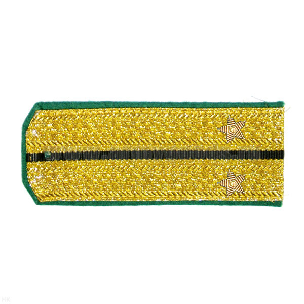 Погоны парадные золотые (металлиз.) с зел. кантом с 1 черн. просв., вышит. канителью (лейтенант)