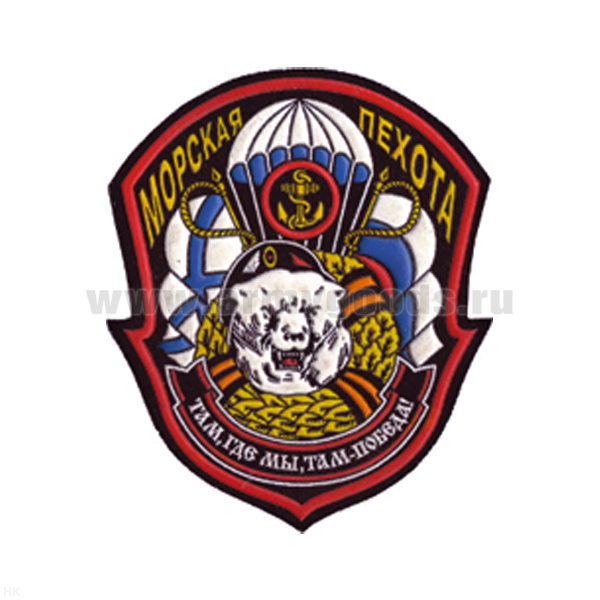 Шеврон пластизолевый МП ("груша" с бел. медведем) Там, где мы, там победа!