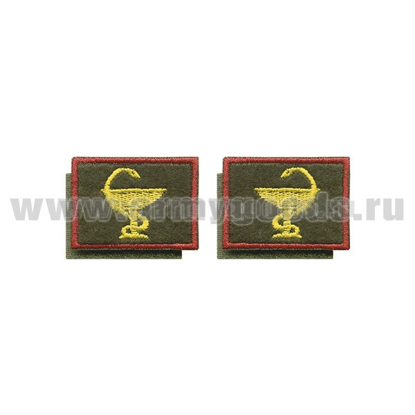 -Нашивки вышит. Медицинская служба (нов/обр) оливк. фон, красный кант петличные эмблемы на липучке