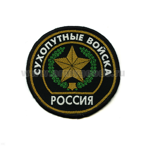 Шеврон тканый Россия Сухопут. войска (кругл. с эмбл. и надп.) черн.