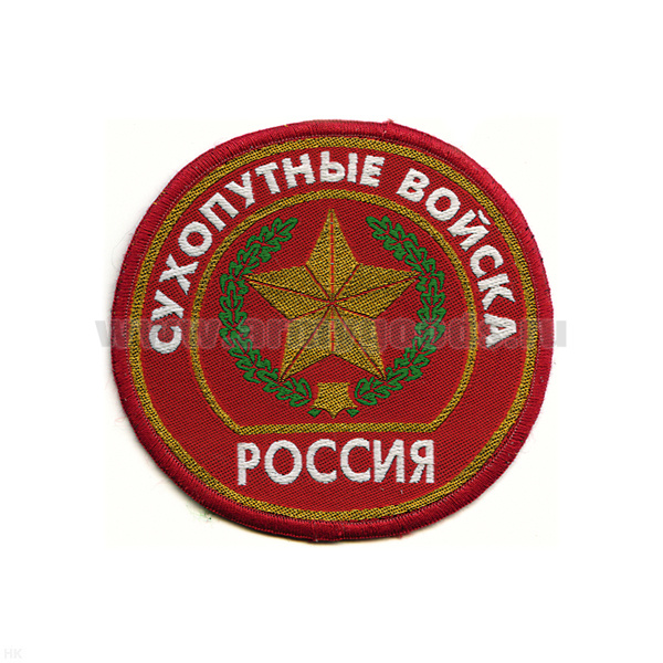 Шеврон тканый Россия Сухопут. войска (кругл. с эмбл. и надп.) красн.