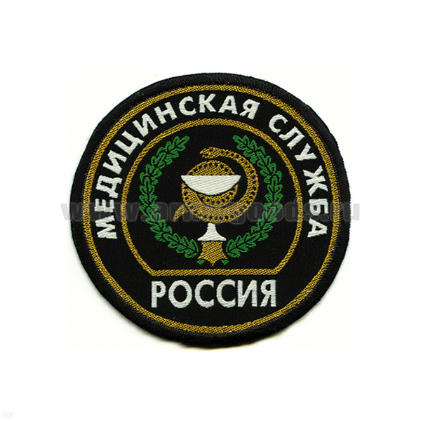 Шеврон тканый Россия Мед. сл. (кругл. с эмбл. и надп.)