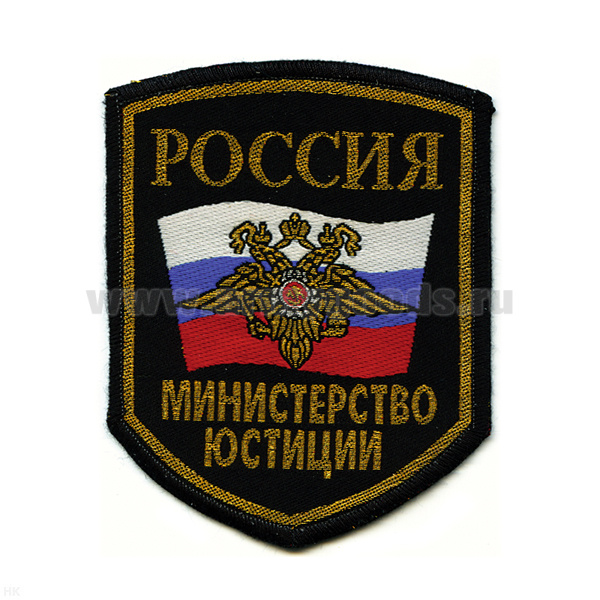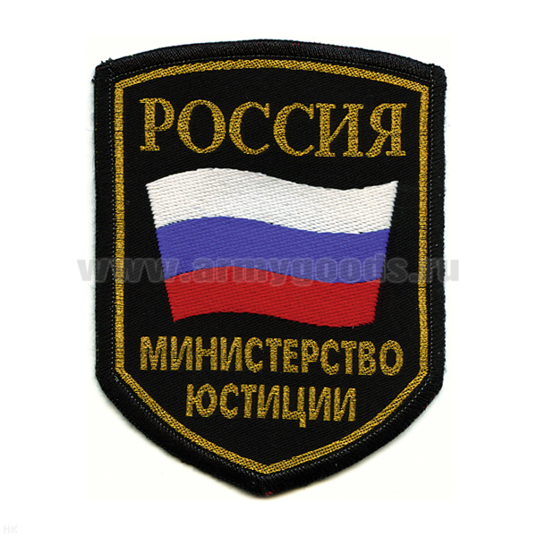 Шеврон тканый Россия МЮ (5-уг. с флагом и орлом) черн.