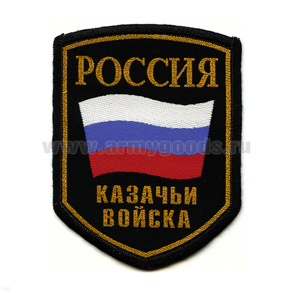 Шеврон тканый Россия Казачьи войска (5-уг. с флагом)