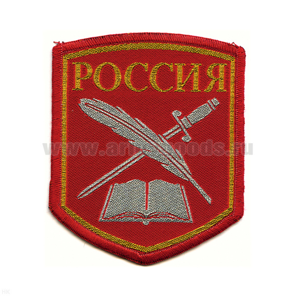 -Шеврон тканый КК (книга, перо и шпага) 5-уг. (красн.)