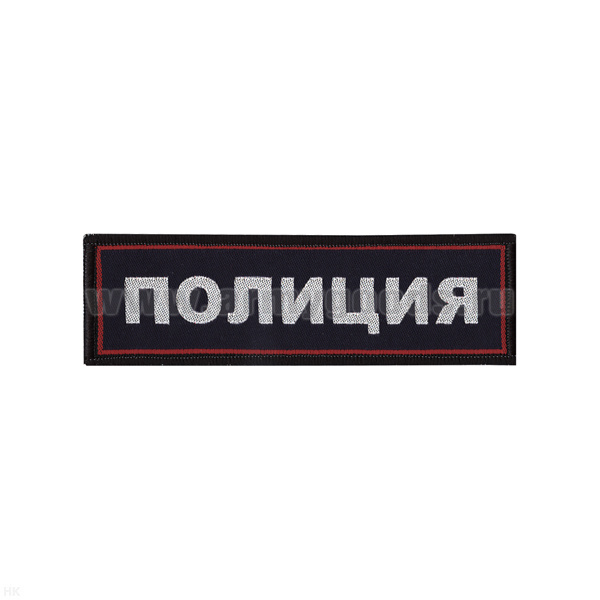 Нашивка на грудь тканая Полиция (темно-синий фон, красный кант, серебристые буквы)