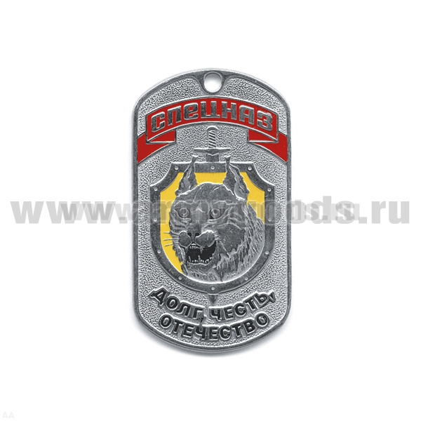 Жетон (нерж. ст., эмал.) Спецназ Долг, честь, отечество (рысь на стальном фоне)