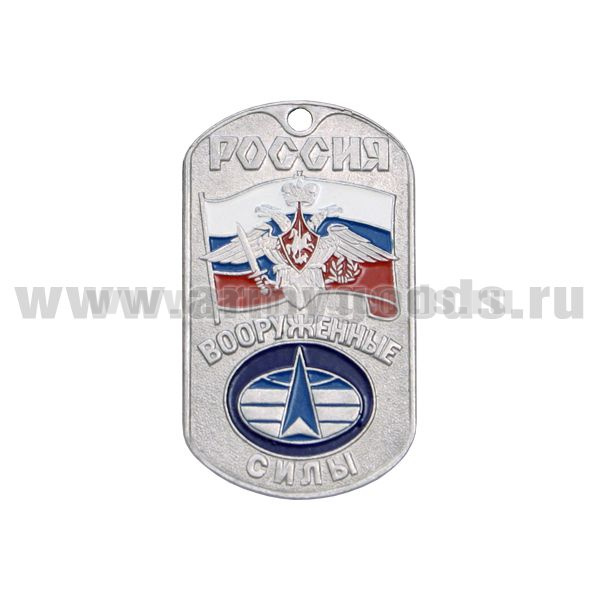-Жетон (нерж. ст., эмал.) сер. Россия ВС (с орлом РА на флаге РФ) космические войска нов/обр