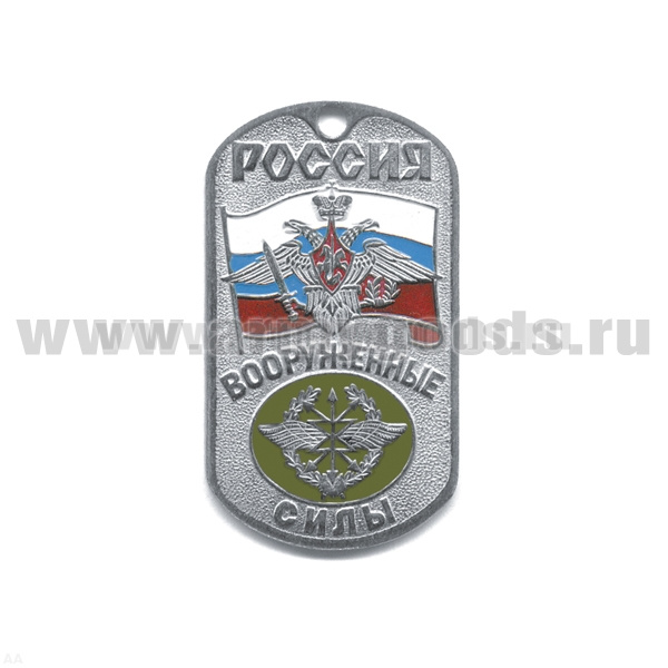 Жетон (нерж. ст., эмал.) сер. Россия ВС (с орлом РА на флаге РФ) войска связи