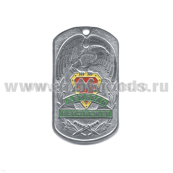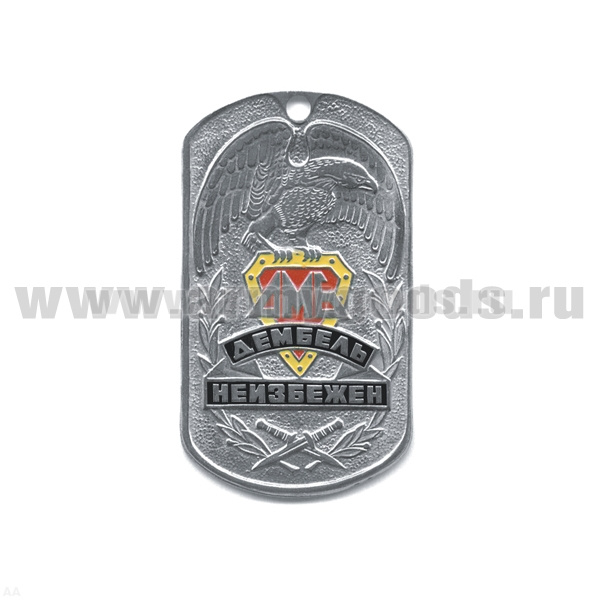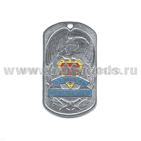 Жетон (нерж. ст., эмал.) Дембель неизбежен (орел) надп. на голуб. фоне