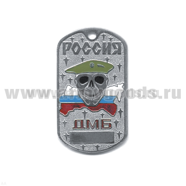 Жетон (нерж. ст., эмал.) Россия ДМБ (череп в крап. берете)