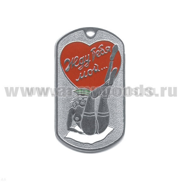 Жетон (нерж. ст., эмал.) Жду тебя, мой… (девушка в зел. фуражке - лежит)