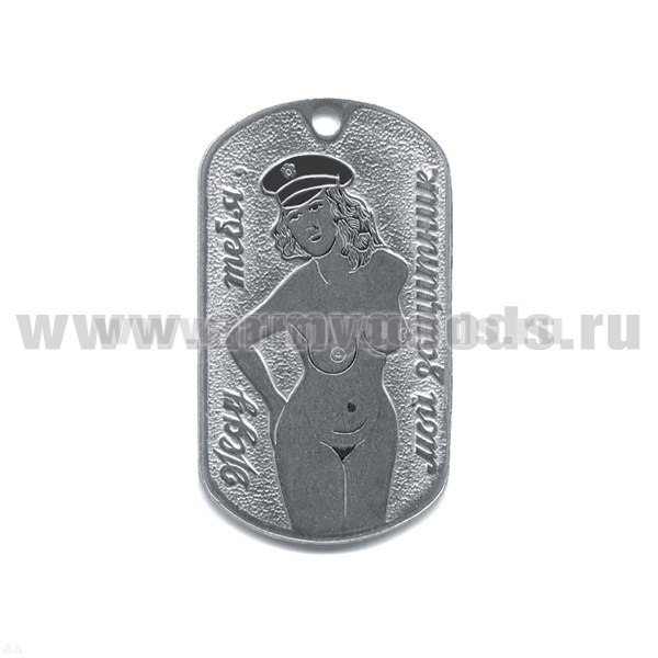 Жетон (нерж. ст., эмал.) Жду тебя, мой… (девушка в черн. фуражке - лежит)