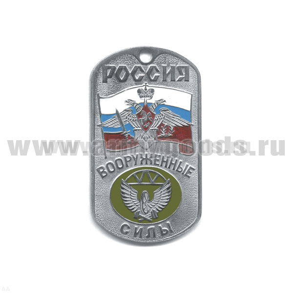 Жетон (нерж. ст., эмал.) сер. Россия ВС (с орлом РА на флаге РФ) мед. сл.