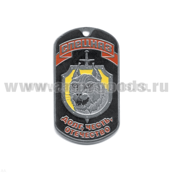 Жетон (нерж. ст., эмал.) Спецназ Долг, честь, отечество (рысь на черн. фоне)